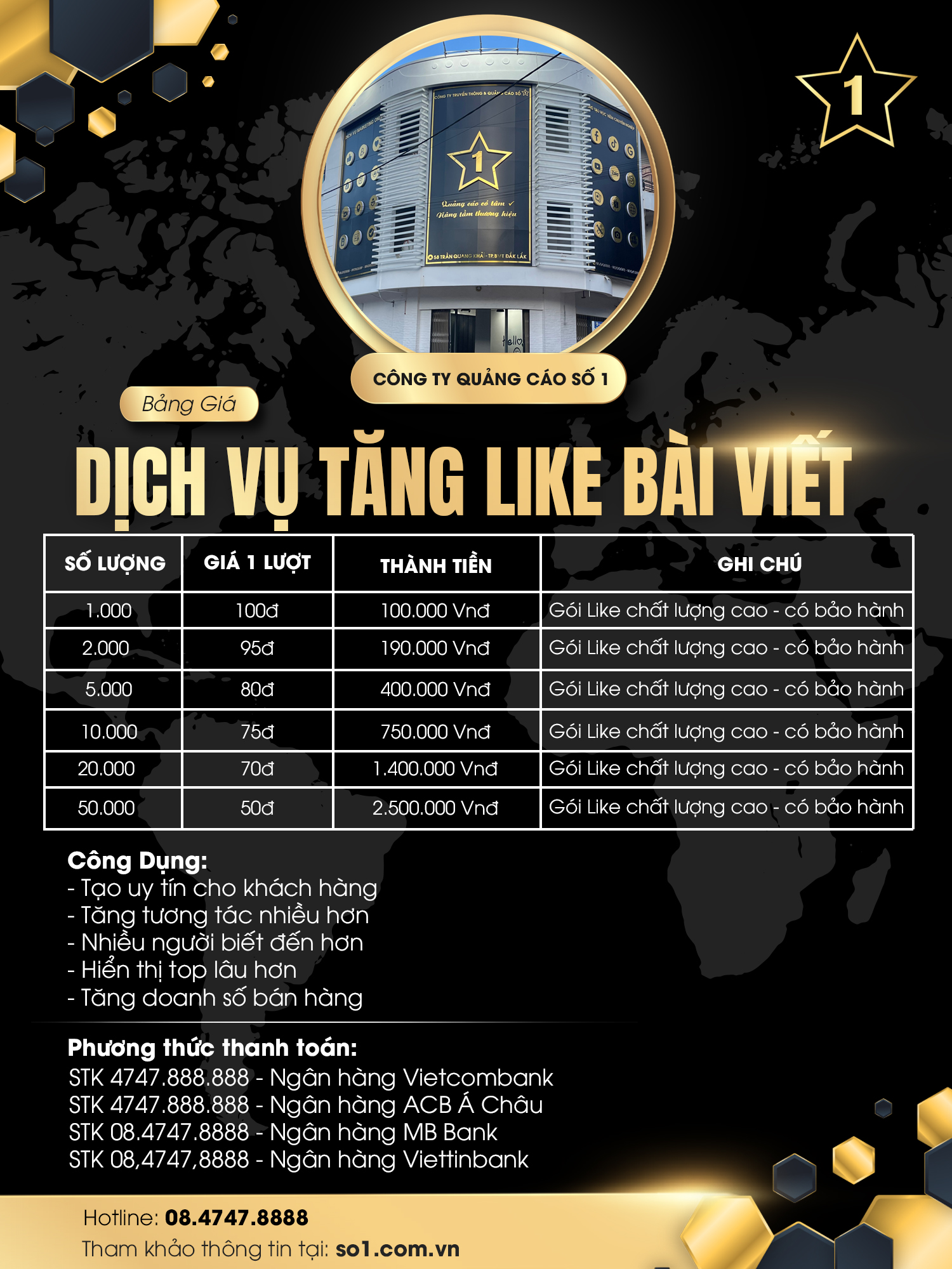 Bảng giá cụ thể dịch vụ Tăng Like Bài Viết Facebook