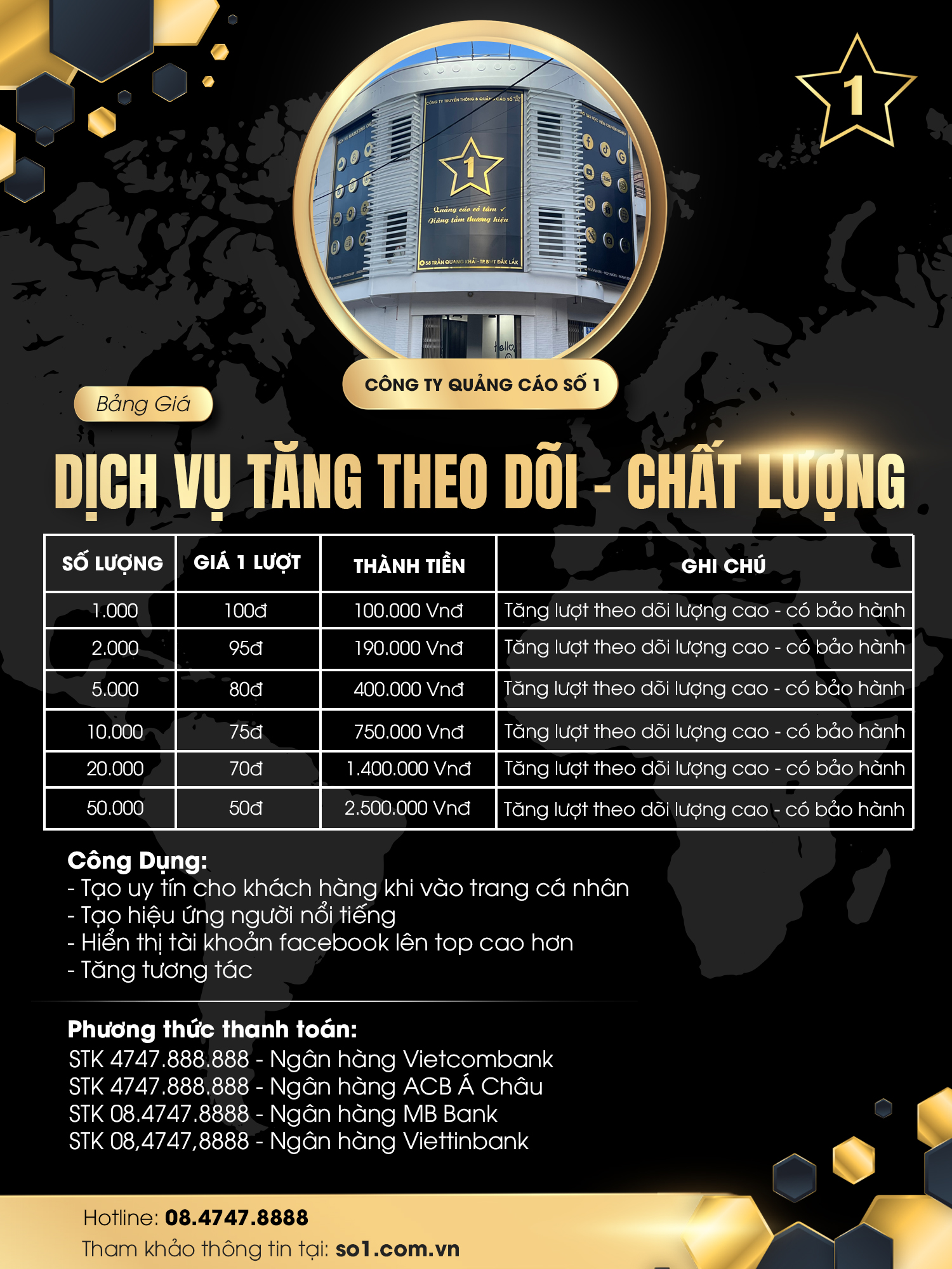 Tăng theo dõi facebook (hay còn gọi là tăng sub facebook) là hình thức tăng lượt follow theo yêu cầu cho các profile cá nhân của khách hàng. Từ đó có thể đăng hình ảnh, bài viết, mẫu sản phẩm của mình lên tường cá nhân để kinh doanh buôn bán giúp tăng lượt tương tác và tăng người tiếp cận đến bài viết cực kì hiệu quả. Hơn thế nữa, có được số lượng theo dõi cá nhân lớn sẽ giúp quý khách có được lượng khách hàng hoặc lượng người hâm hộ ổn định. Khách hàng có thể vận dùng lượng người theo dõi để kinh doanh hoặc sử dụng với các mục đích khác.