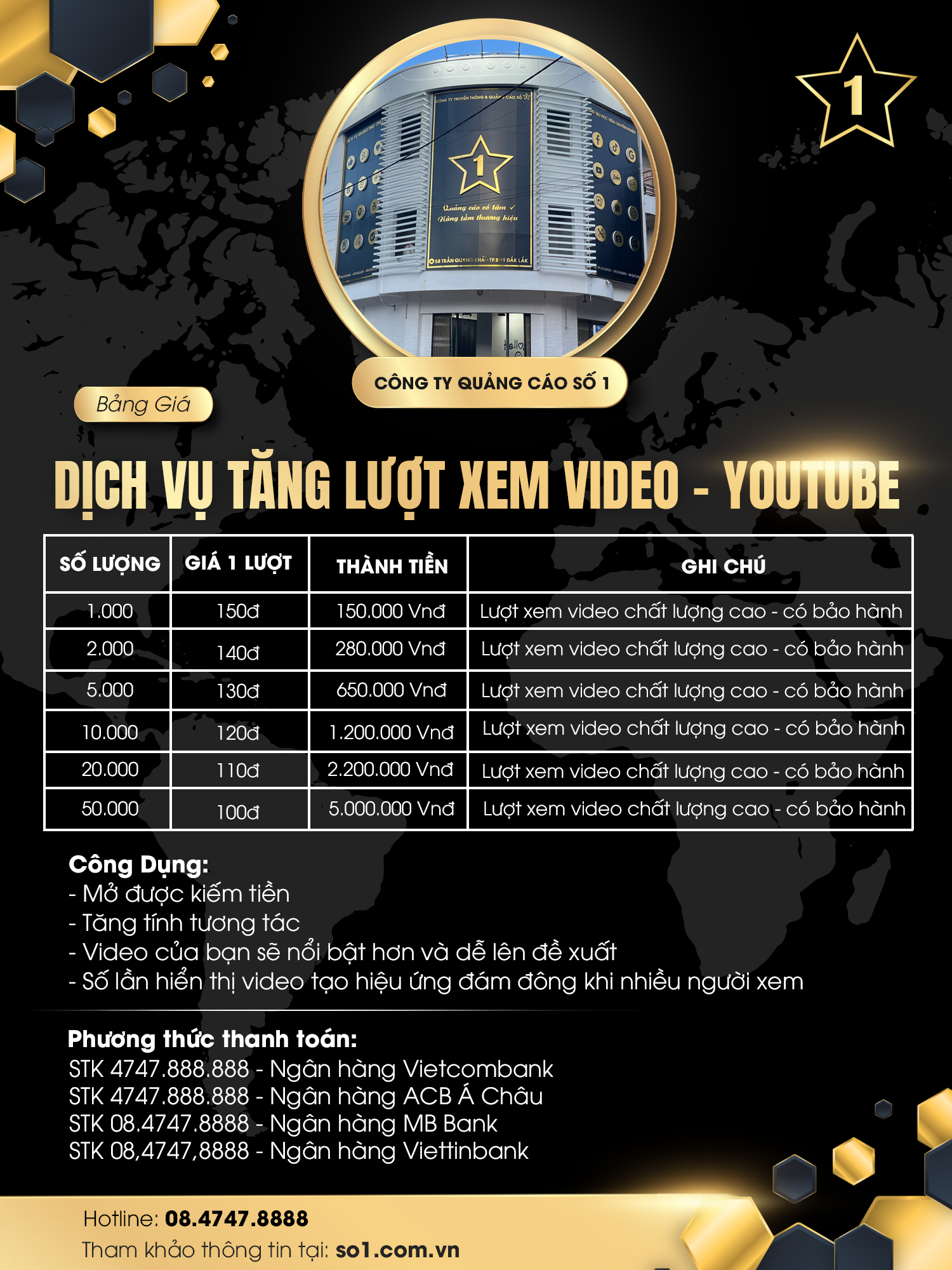 Bảng Giá Dịch Vụ Tăng View Youtube